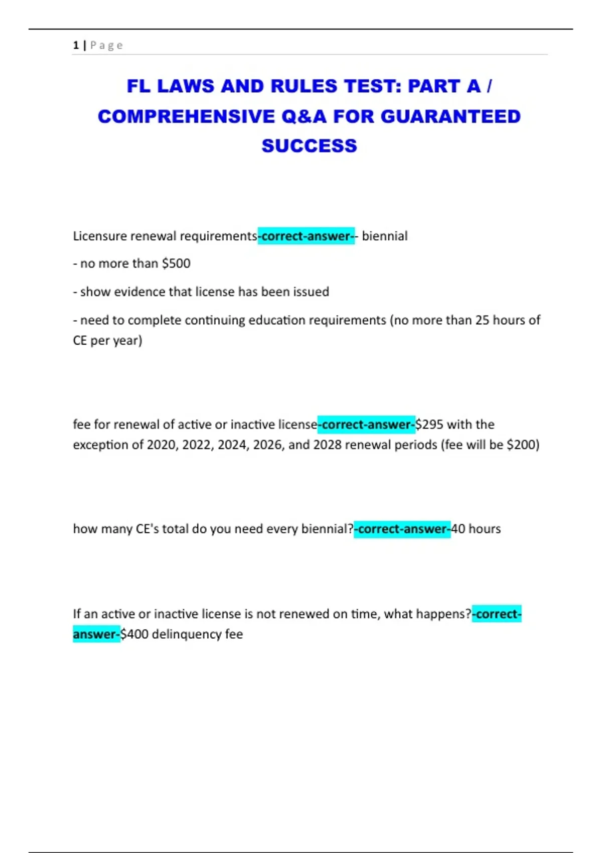 FL LAWS AND RULES TEST: PART A / COMPREHENSIVE Q&A FOR GUARANTEED SUCCESS