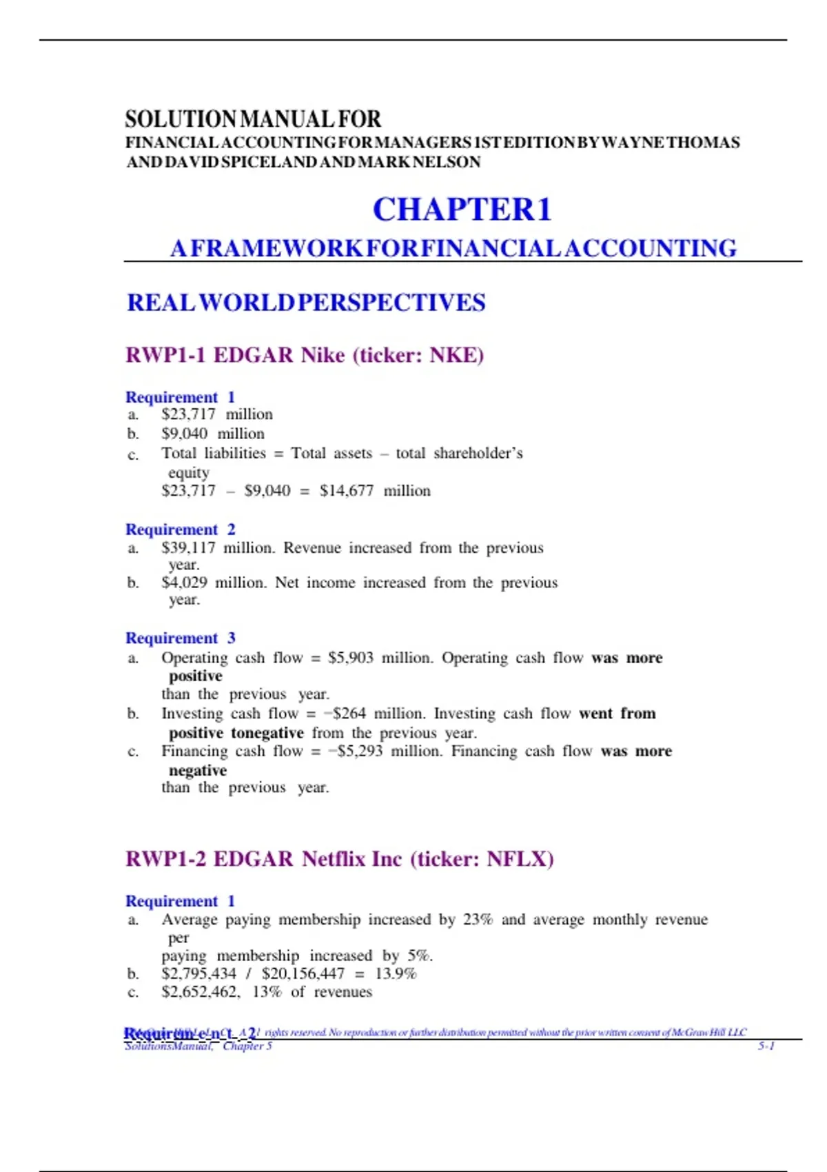 FINANCIAL ACCOUNTING FOR MANAGERS 1ST EDITION BY WAYNE THOMAS