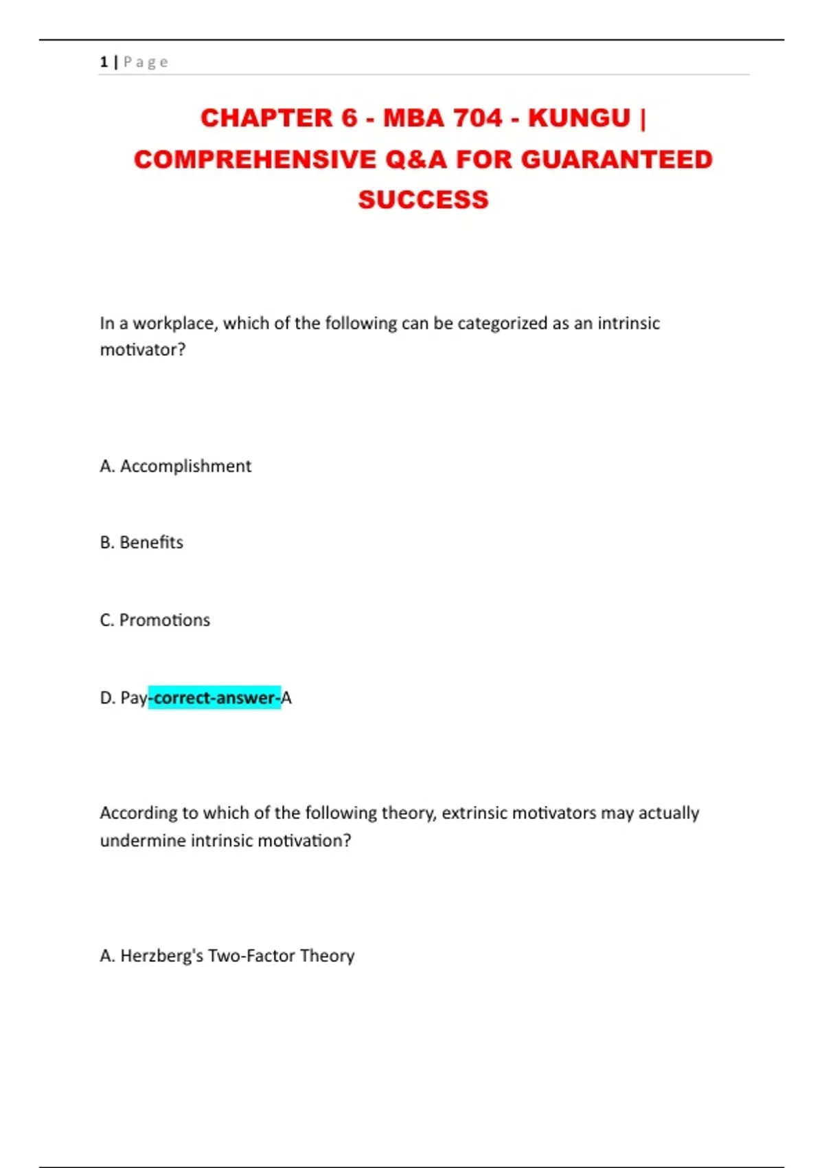 CHAPTER 6 - MBA 704 - KUNGU | COMPREHENSIVE Q&A FOR GUARANTEED SUCCESS