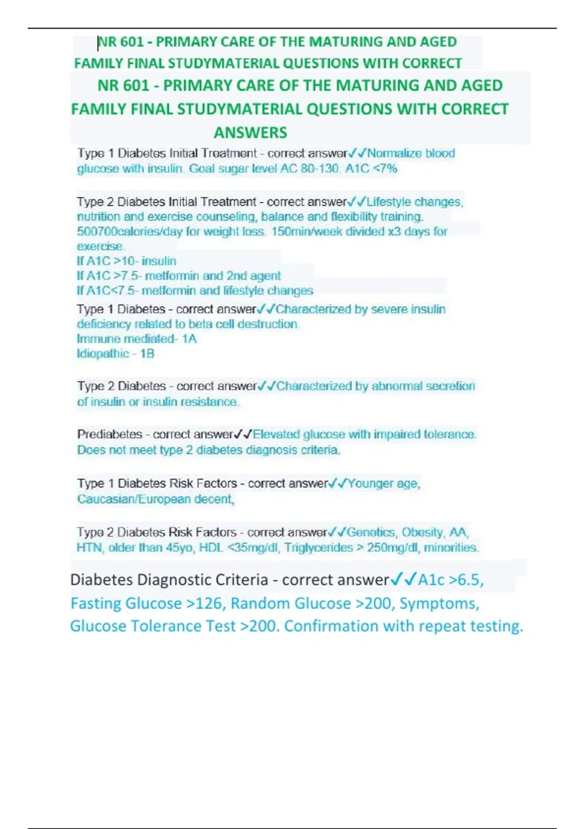 NR 601 - PRIMARY CARE OF THE MATURING AND AGED