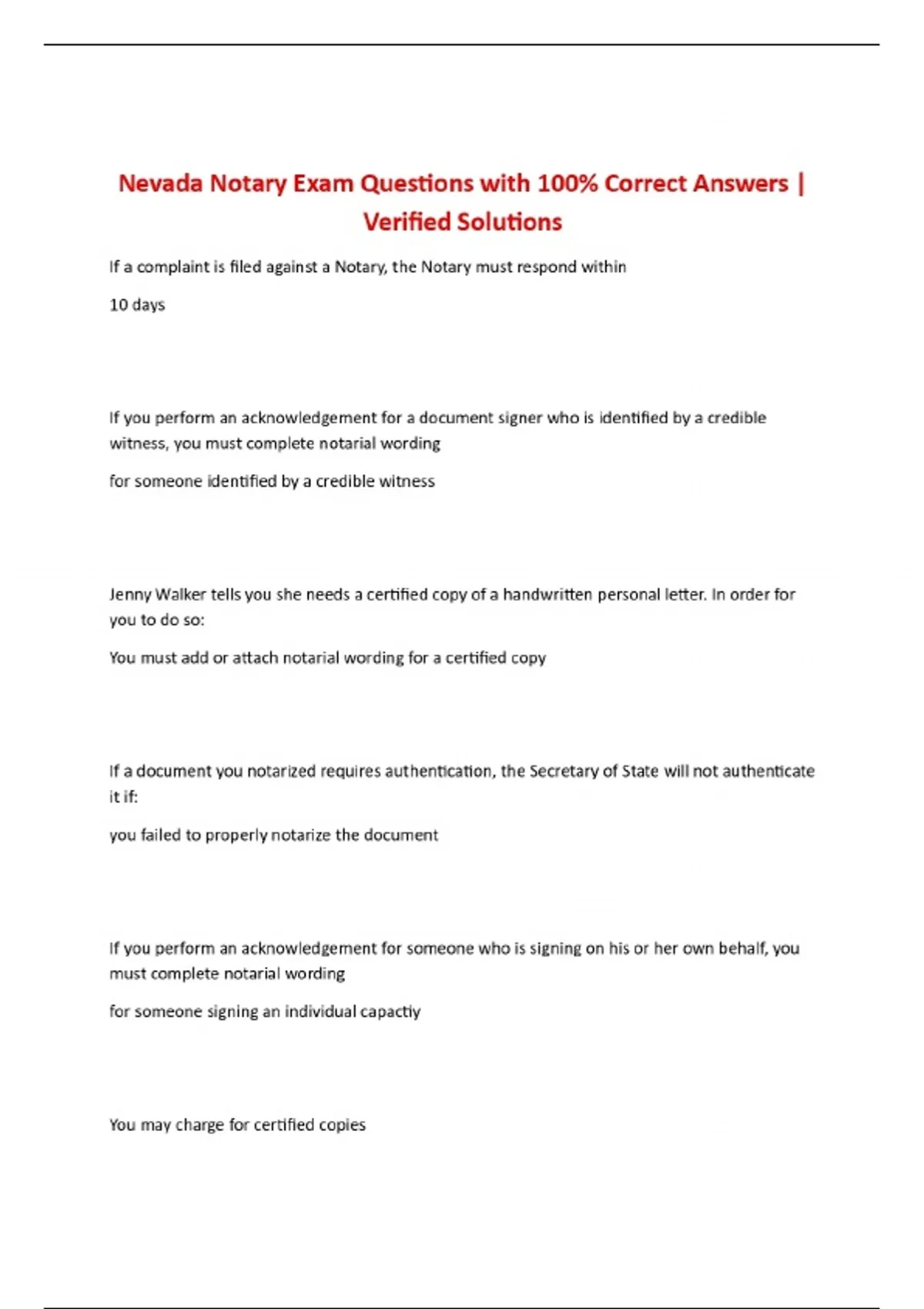 Nevada Notary Exam Questions with 100% Correct Answers | Verified Solutions