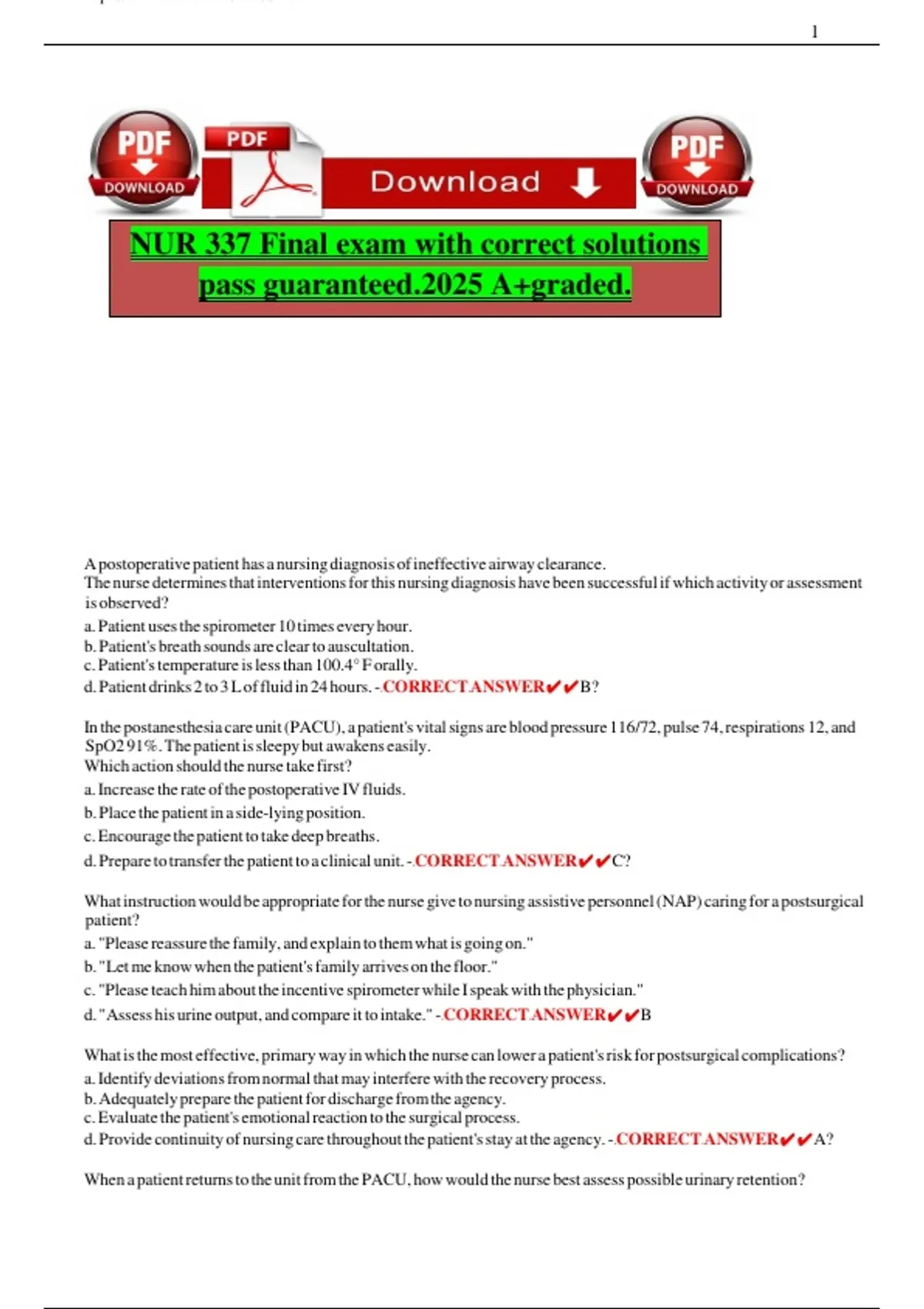 NUR 337 Final exam with correct solutions