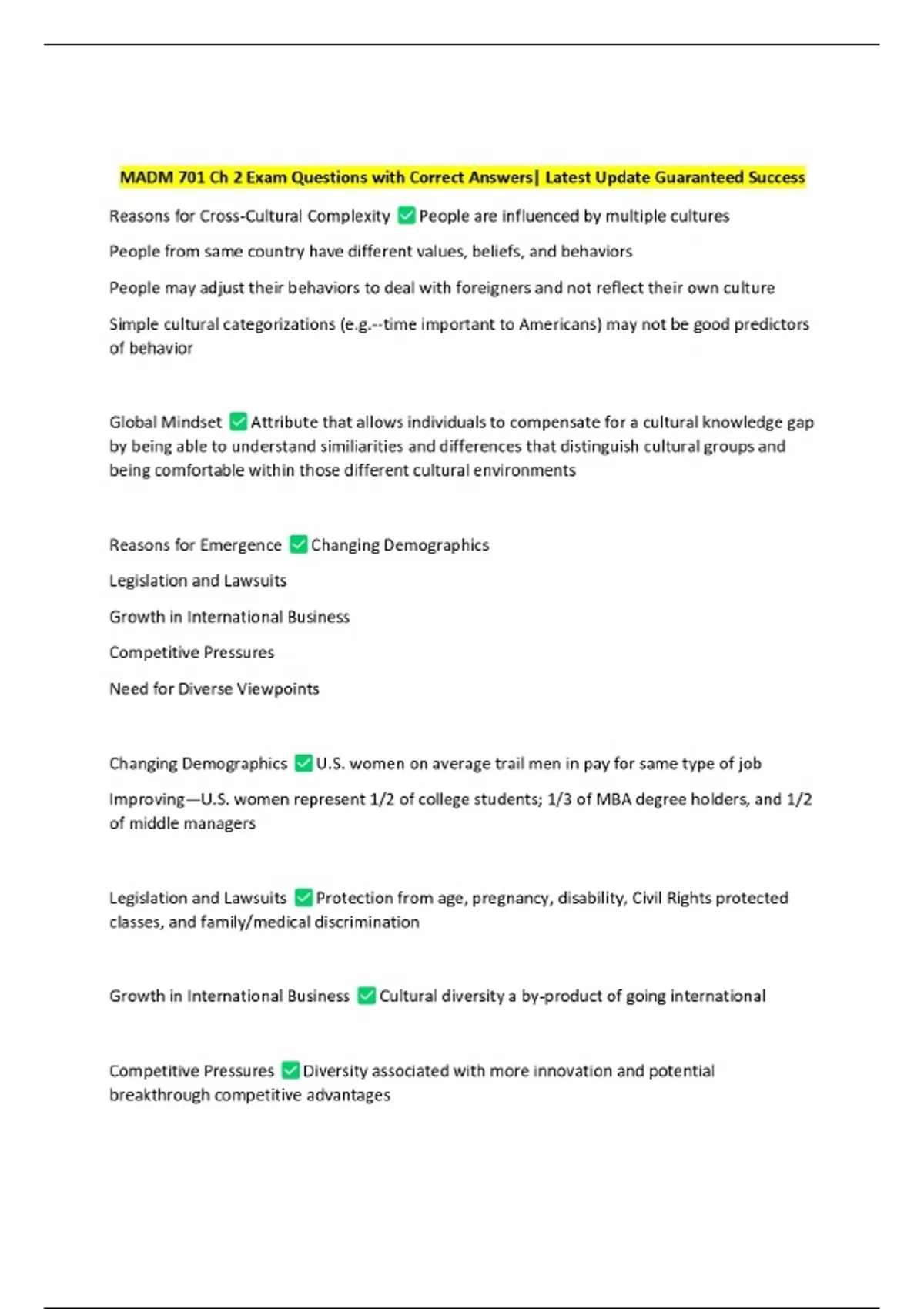 MADM 701 Ch 2 Exam Questions with Correct Answers| Latest Update Guaranteed Success