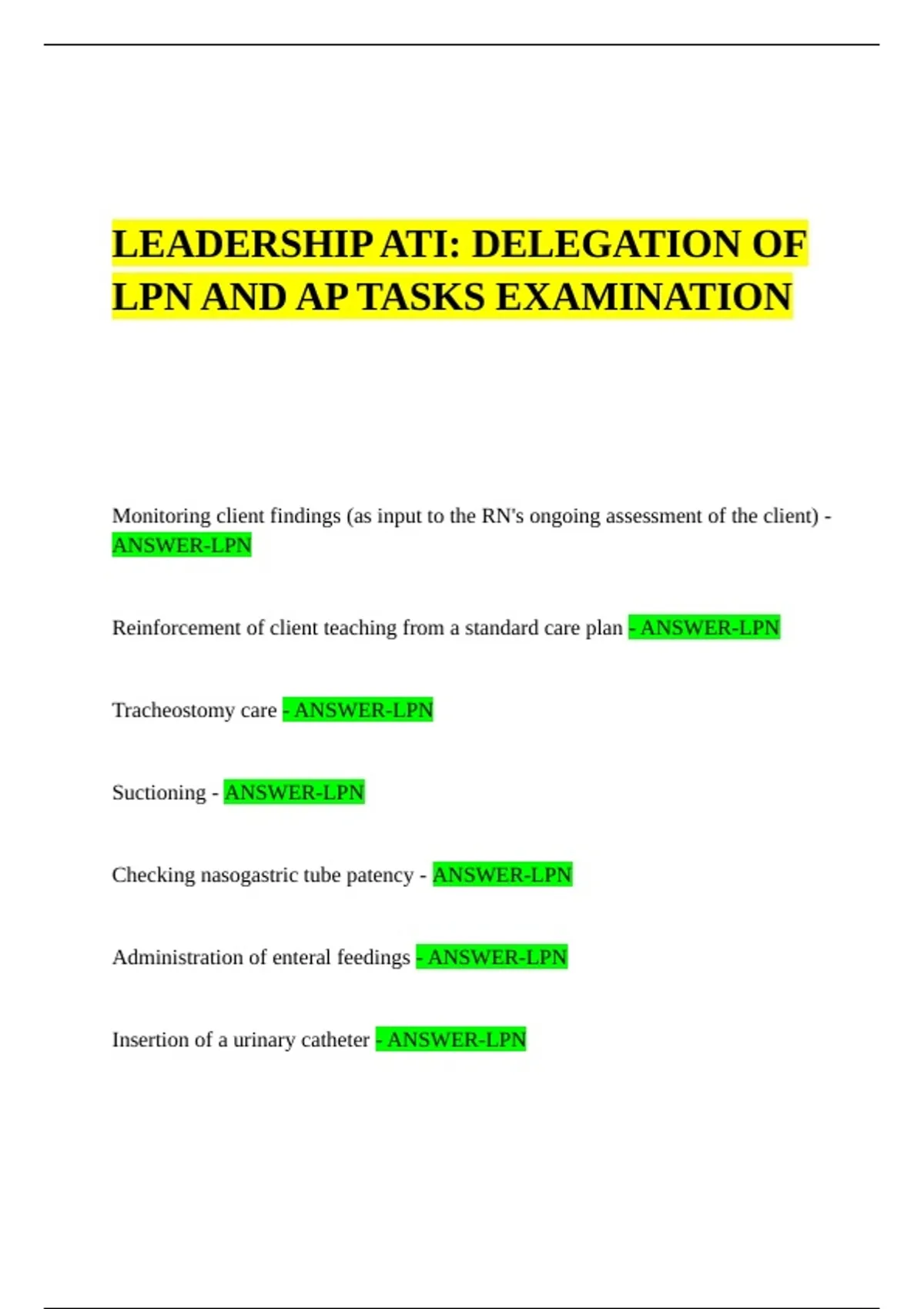 LPN AND AP TASKS EXAMINATION