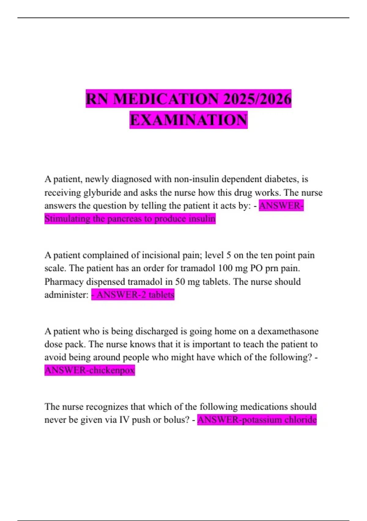 RN MEDICATION 2025/2026