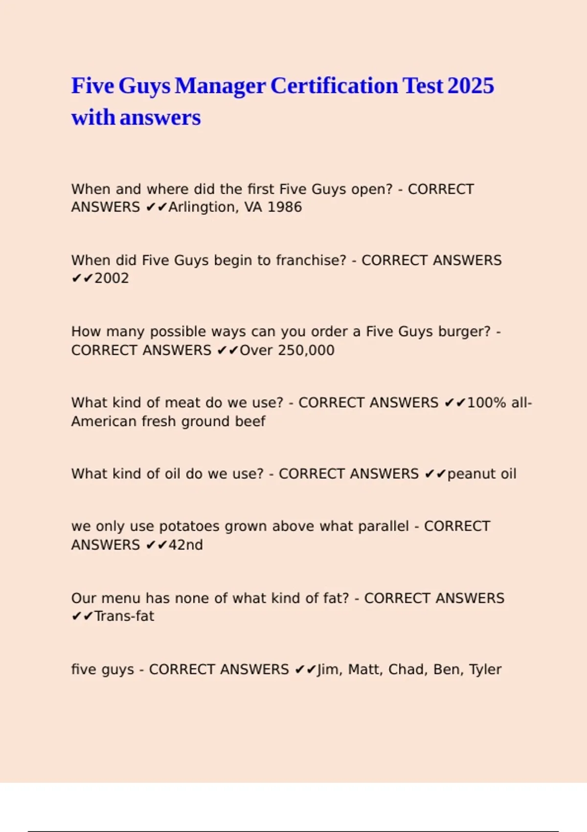 What kind of meat do we use? - CORRECT ANSWERS ✔✔100% all-