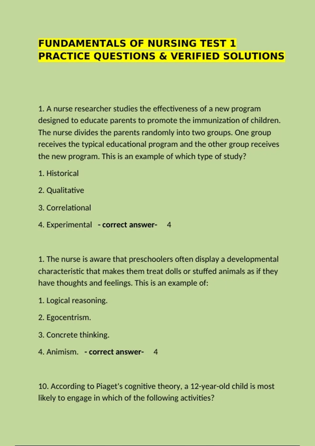 PRACTICE QUESTIONS & VERIFIED SOLUTIONS