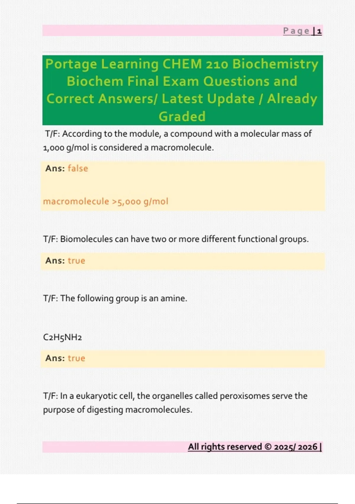 Portage Learning CHEM 210 Biochemistry