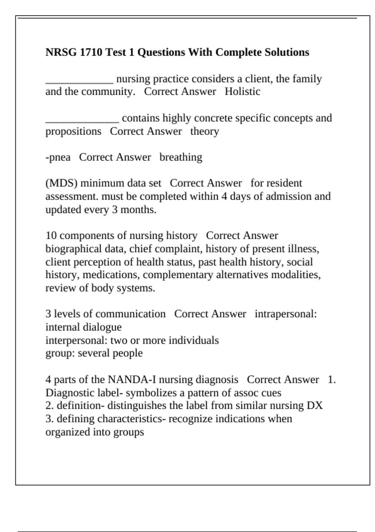a nursing assessment is Correct Answer holistic and focuses
