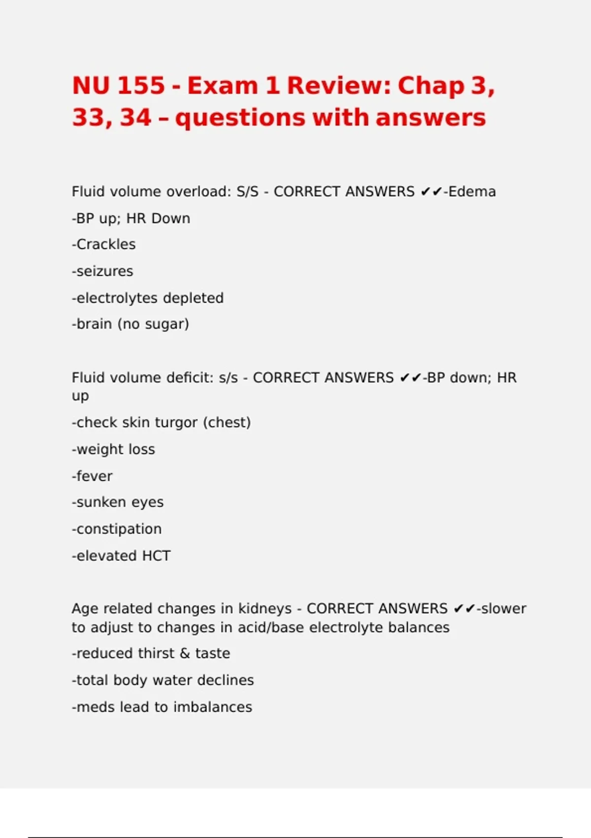 Fluid volume overload: S/S - CORRECT ANSWERS ✔✔-Edema