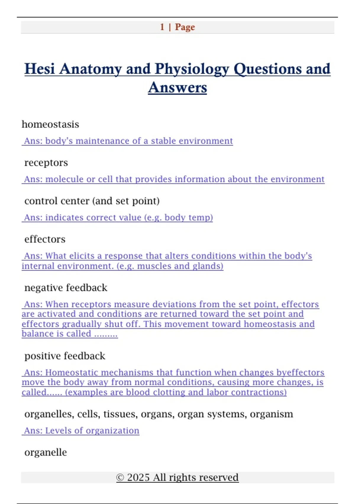 Hesi Anatomy and Physiology Questions and Answers