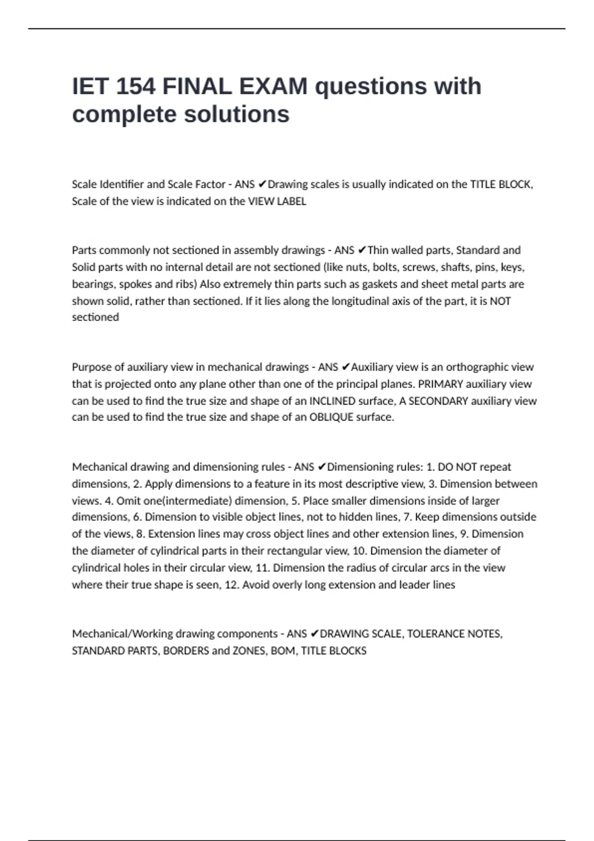 Mechanical drawing and dimensioning rules - ANS ✔Dimensioning rules: 1. DO NOT repeat