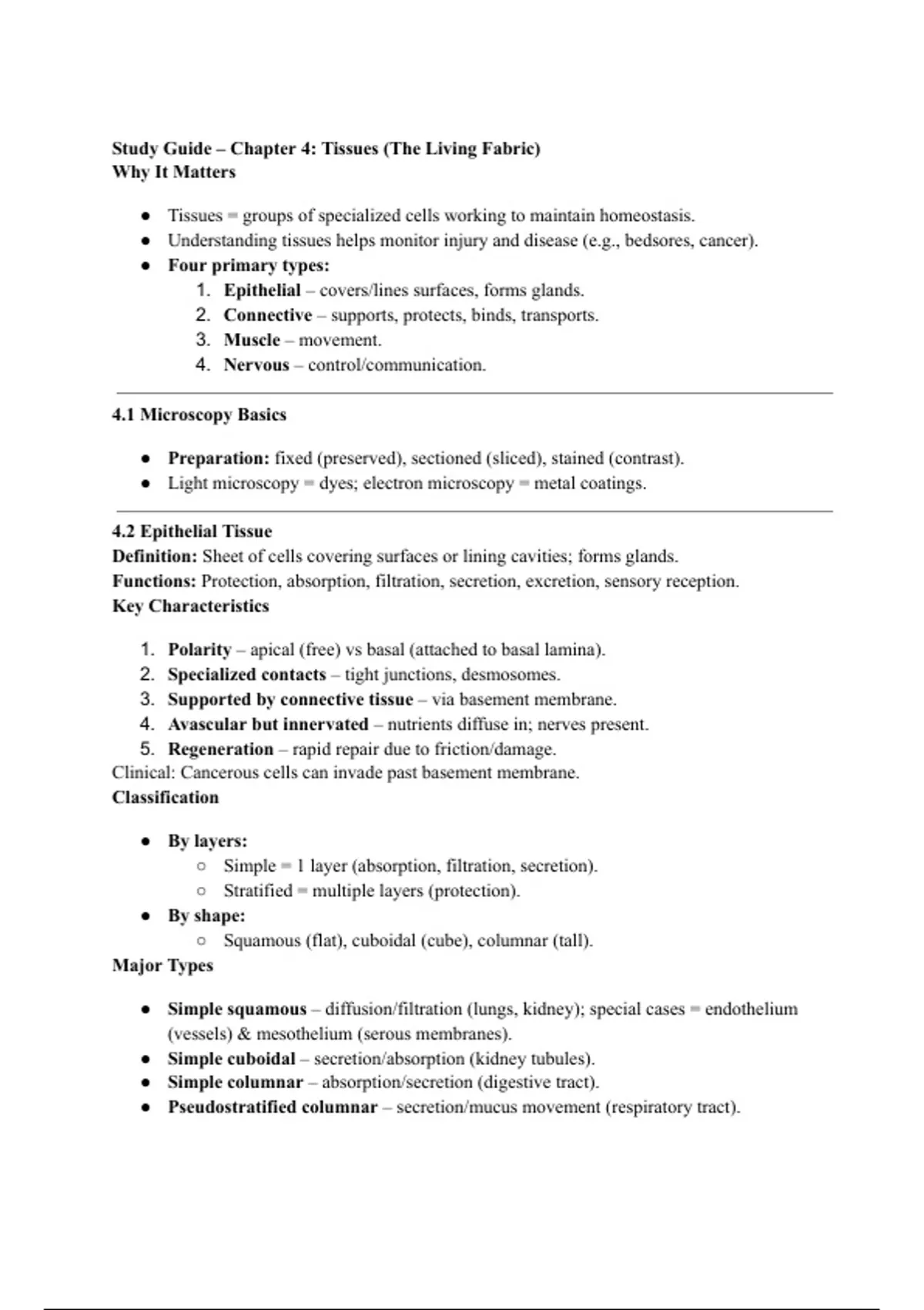Study Guide – Chapter 4: Tissues (The Living Fabric)