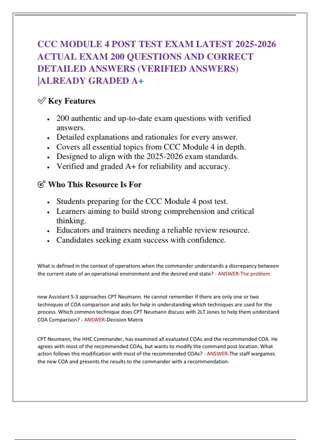 COA Comparison? - ANSWER-Decision Matrix
