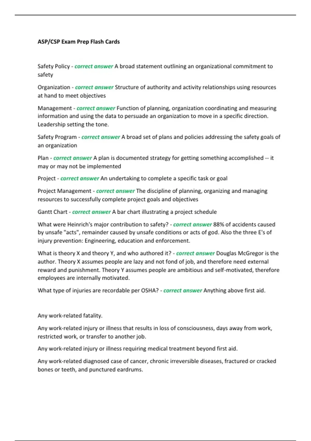 Safety Policy - correct answer A broad statement outlining an organizational commitment to