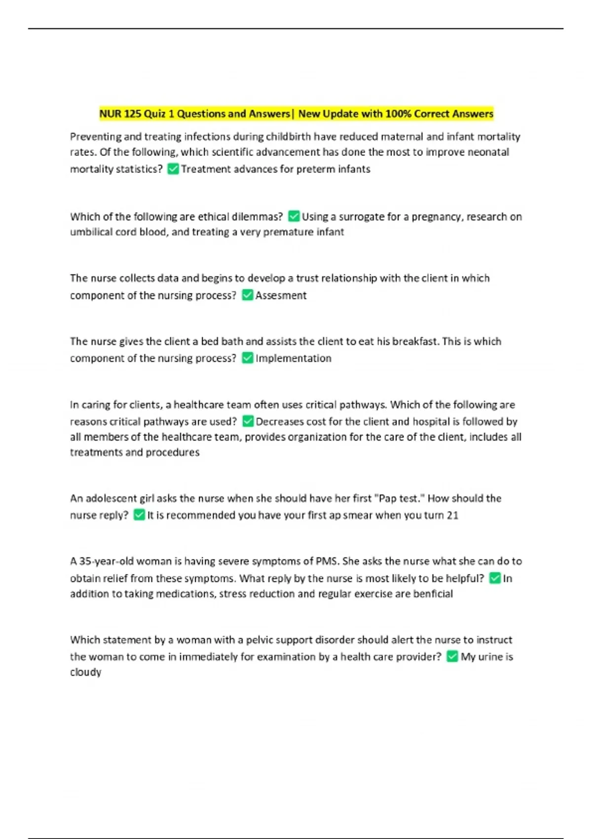 nur 125 quiz 1 questions and answers new update w
