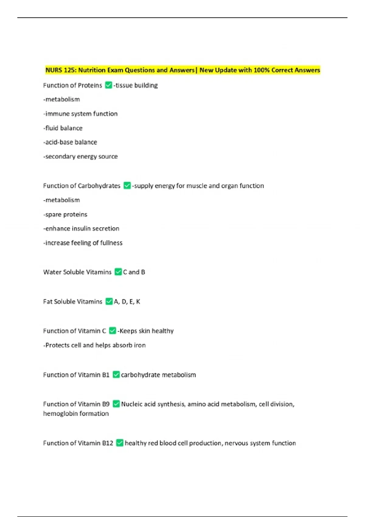 NURS 125: Nutrition Exam Questions and Answers| New Update with 100% Correct Answers