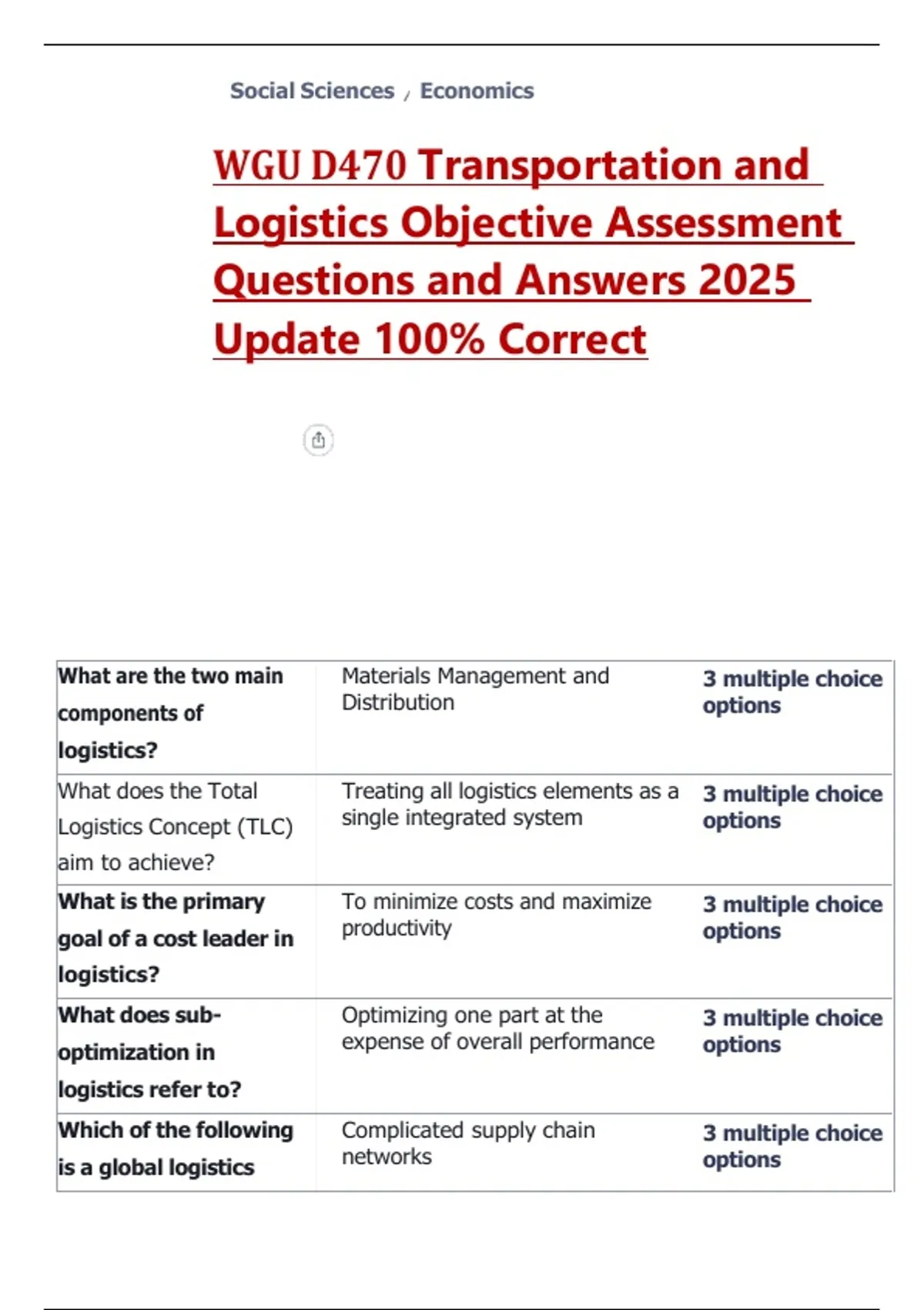 WGU D470 Transportation and