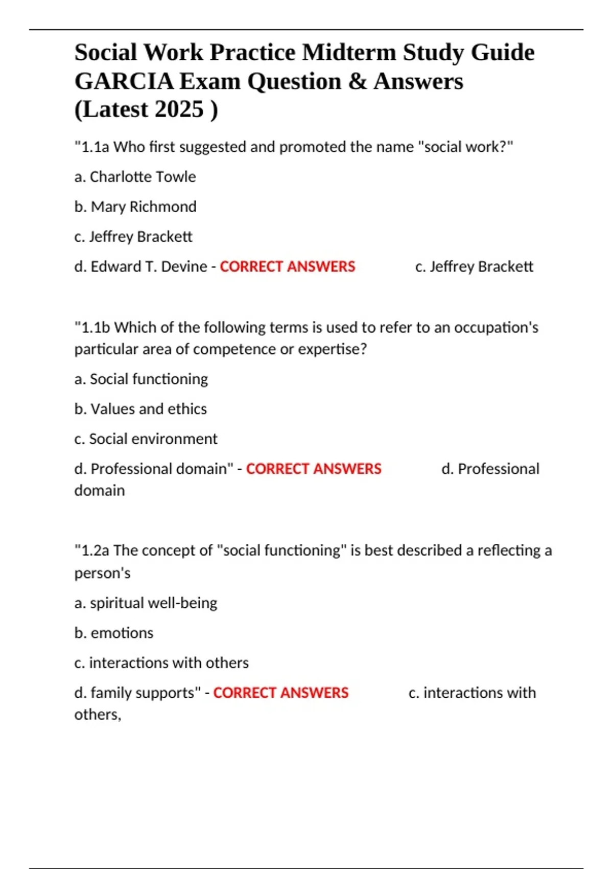 Social Work Practice Midterm Study Guide GARCIA Exam Question & Answers (Latest 2025 ).docx