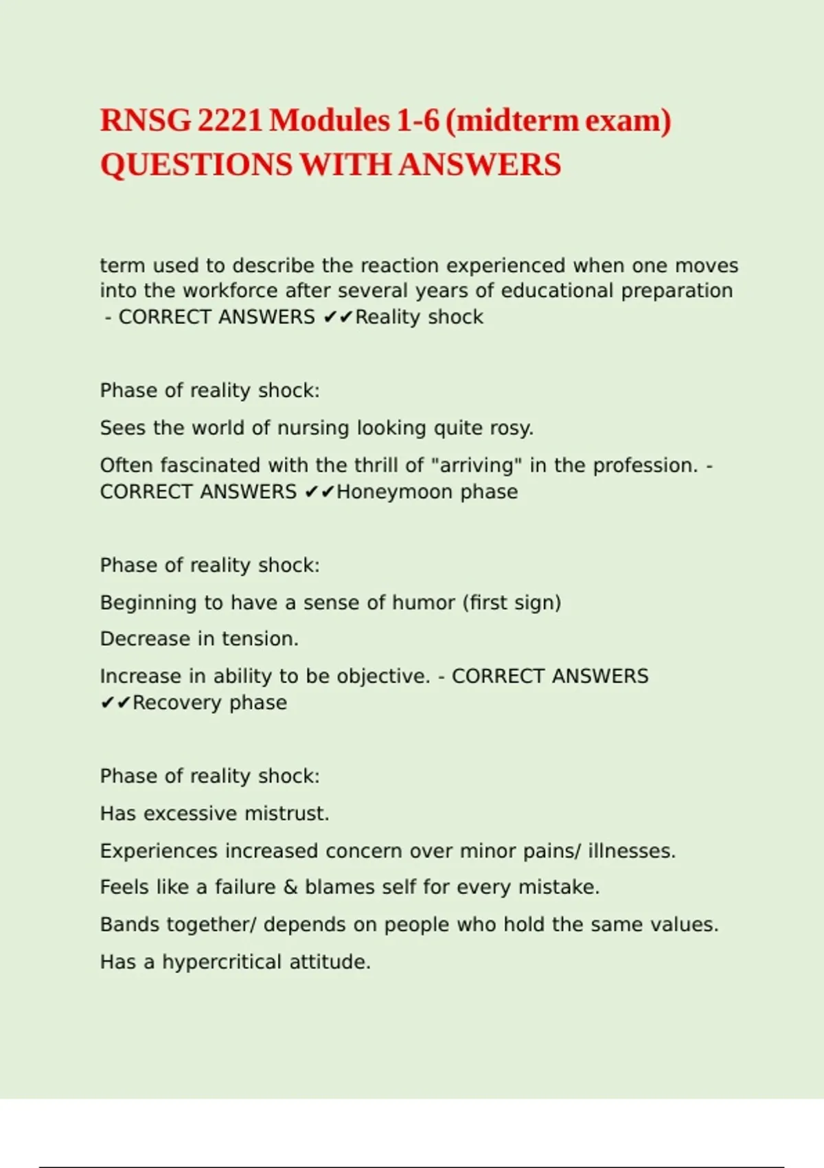 RNSG 2221 Modules 1-6 (midterm exam) QUESTIONS WITH ANSWERS