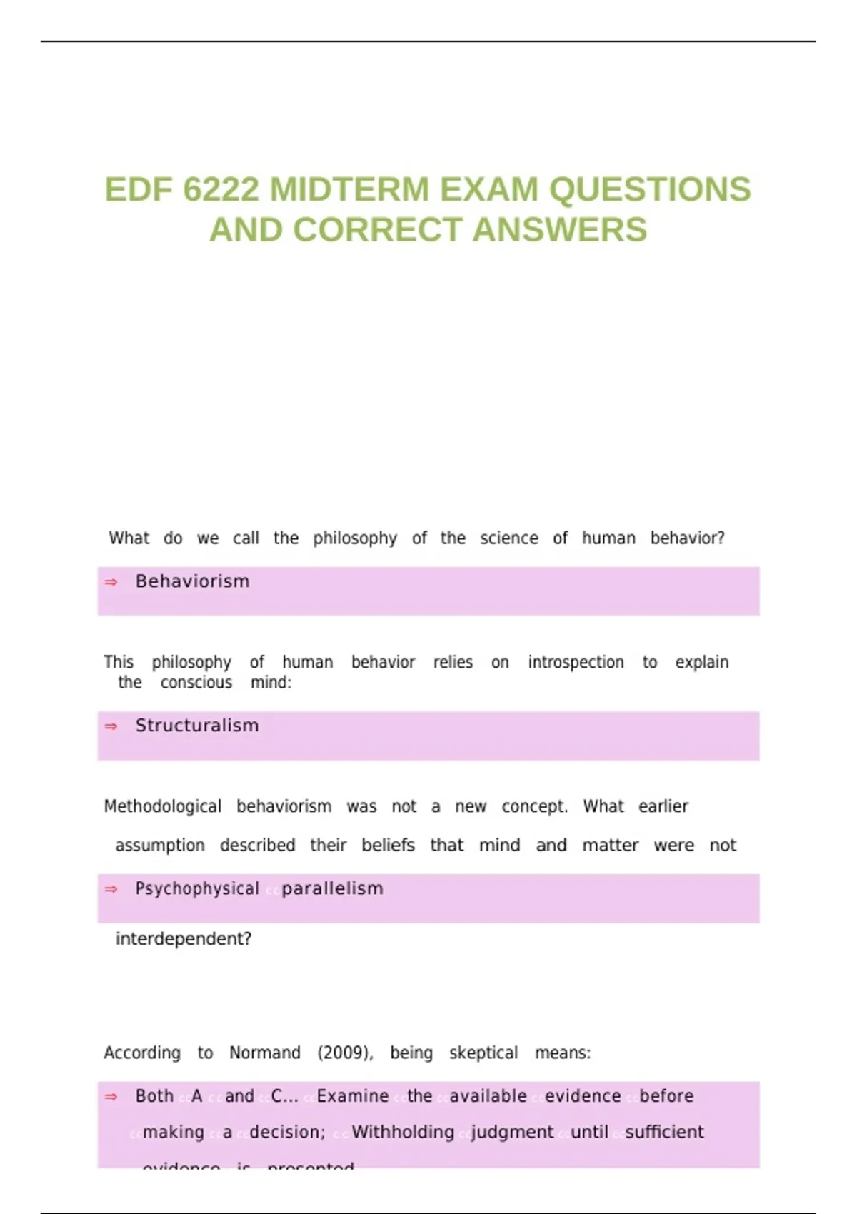 EDF 6222 MIDTERM EXAM QUESTIONS AND CORRECT ANSWERS