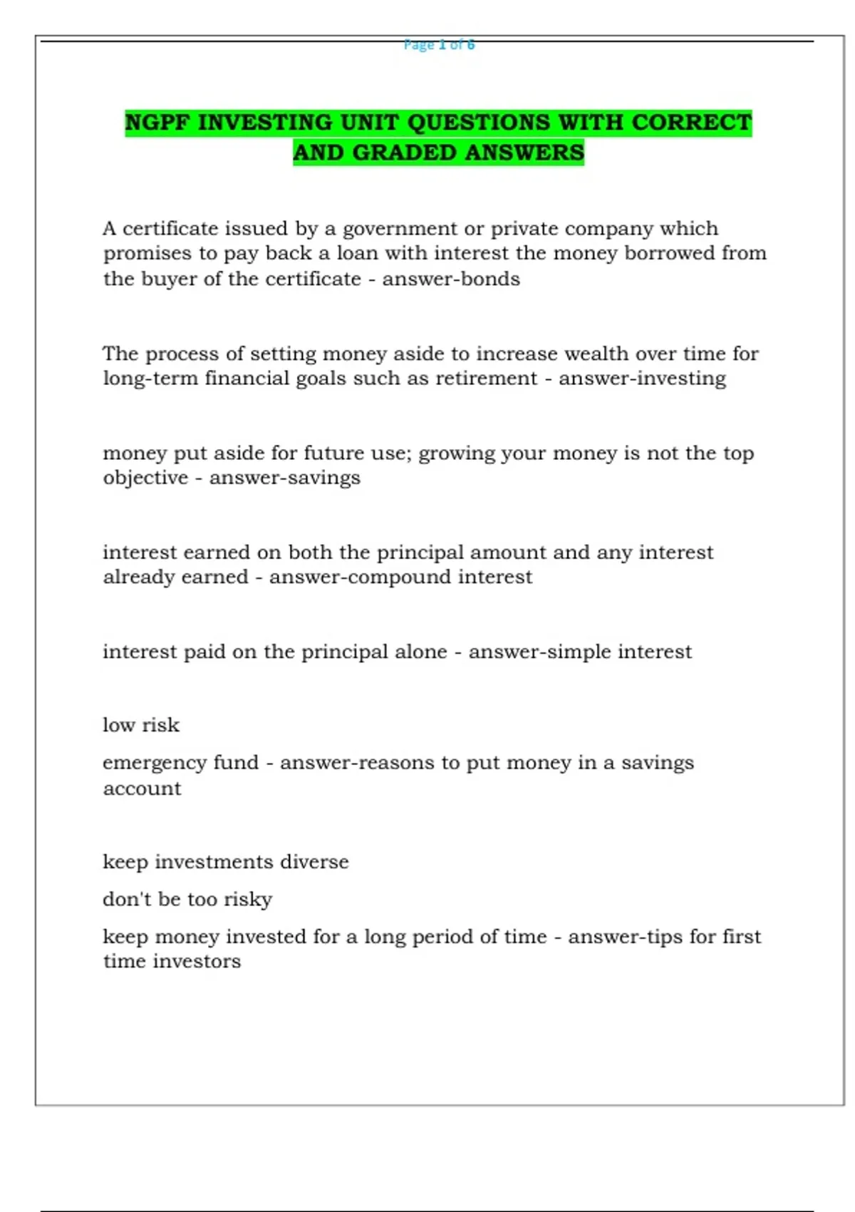 NGPF INVESTING UNIT QUESTIONS WITH CORRECT