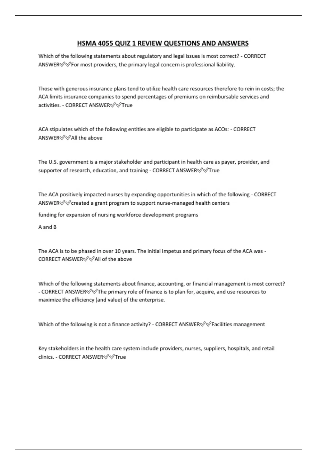 HSMA 4055 QUIZ 1 REVIEW QUESTIONS AND ANSWERS