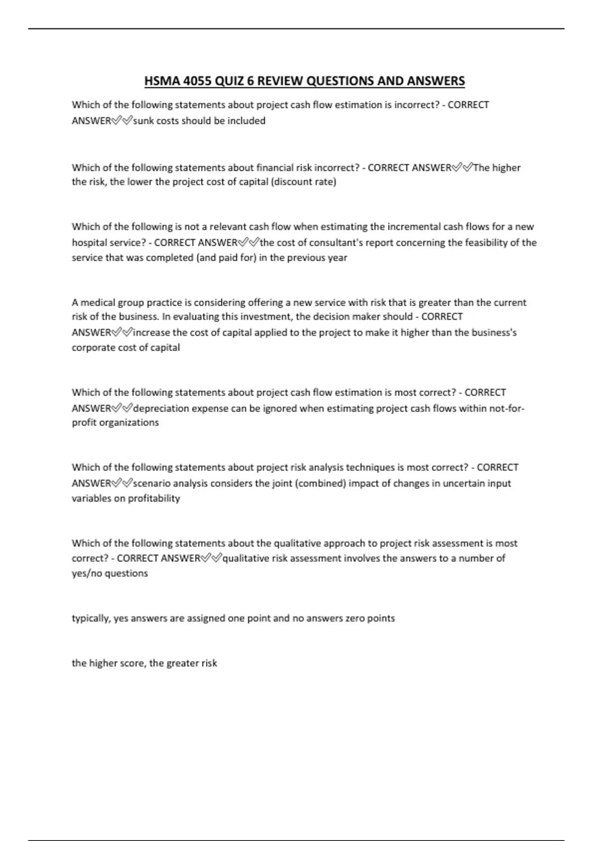 HSMA 4055 QUIZ 6 REVIEW QUESTIONS AND ANSWERS