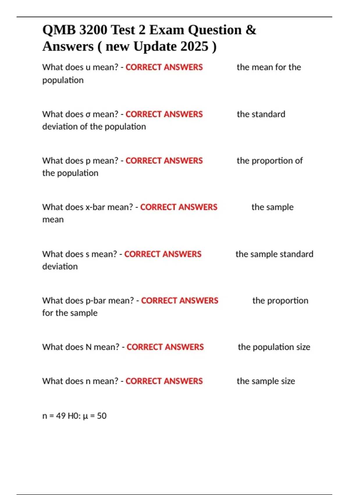 QMB 3200 Test 2 Exam Question &