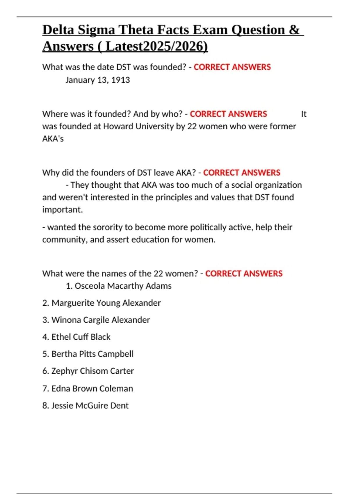, Delta Sigma Theta Facts Exam Question &