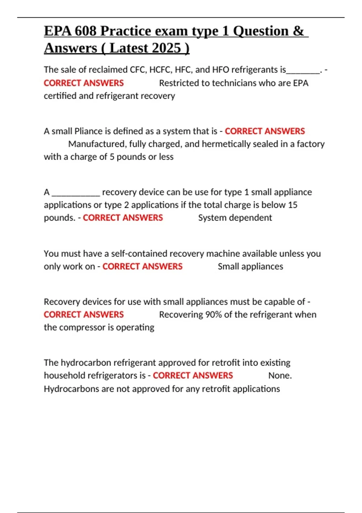 CORRECT ANSWERS ✔✔Restricted to technicians who are EPA