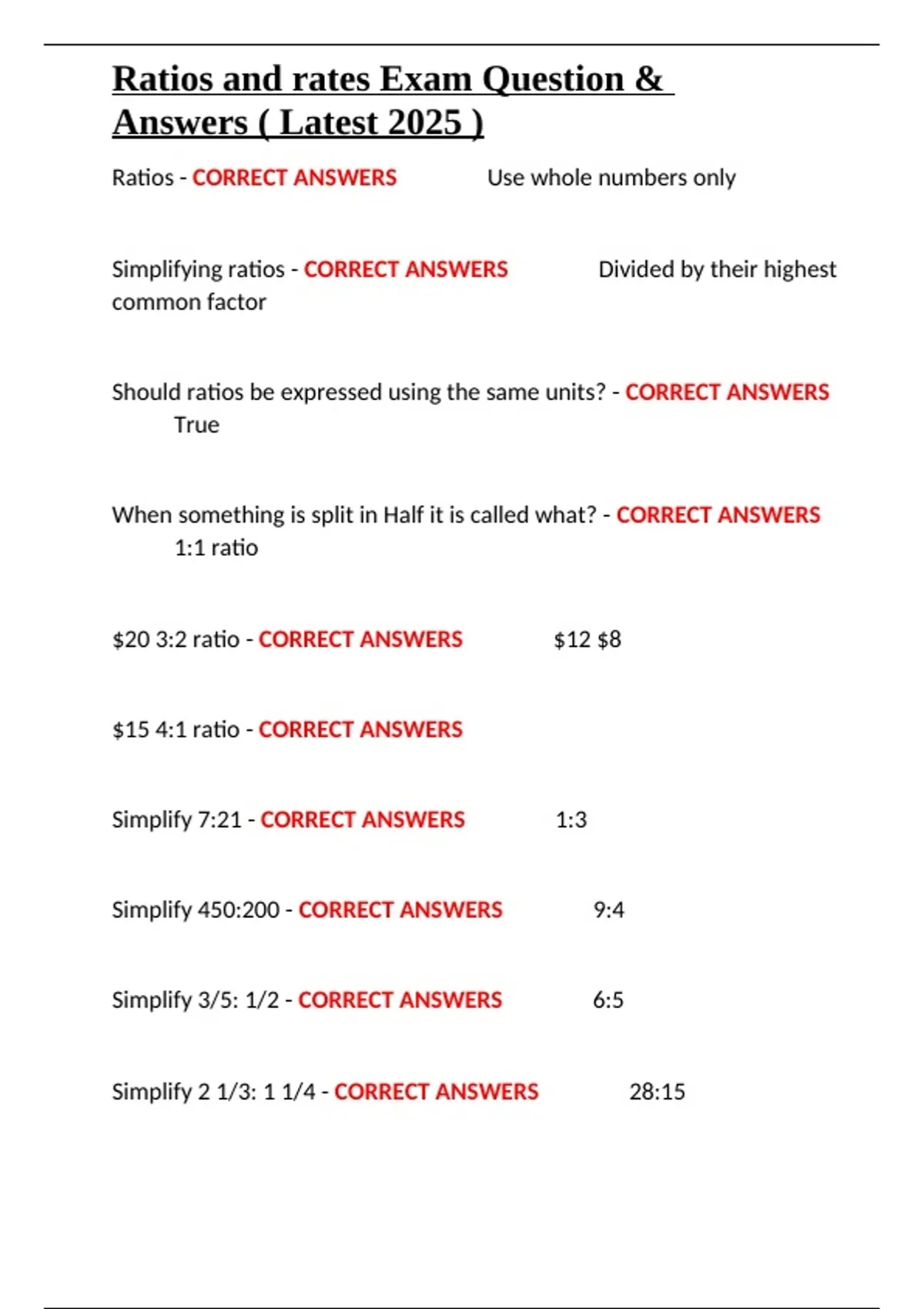 Ratios and rates Exam Question & Answers ( Latest 2025 ).docx