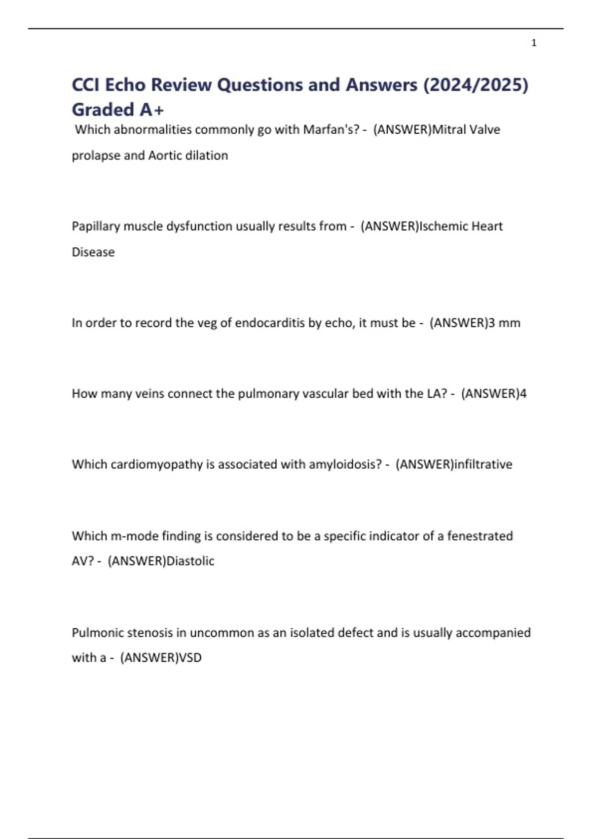 CCI Echo Review Questions and Answers (2024/2025)