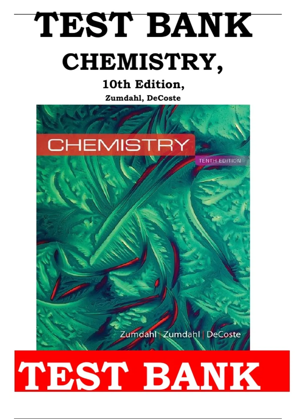 Test Bank - for Chemistry 10th Edition by Steven Zumdahl, Susan Zumdahl, Donald J. DeCoste, All Chapter 1-22 | Complete Guide A+
