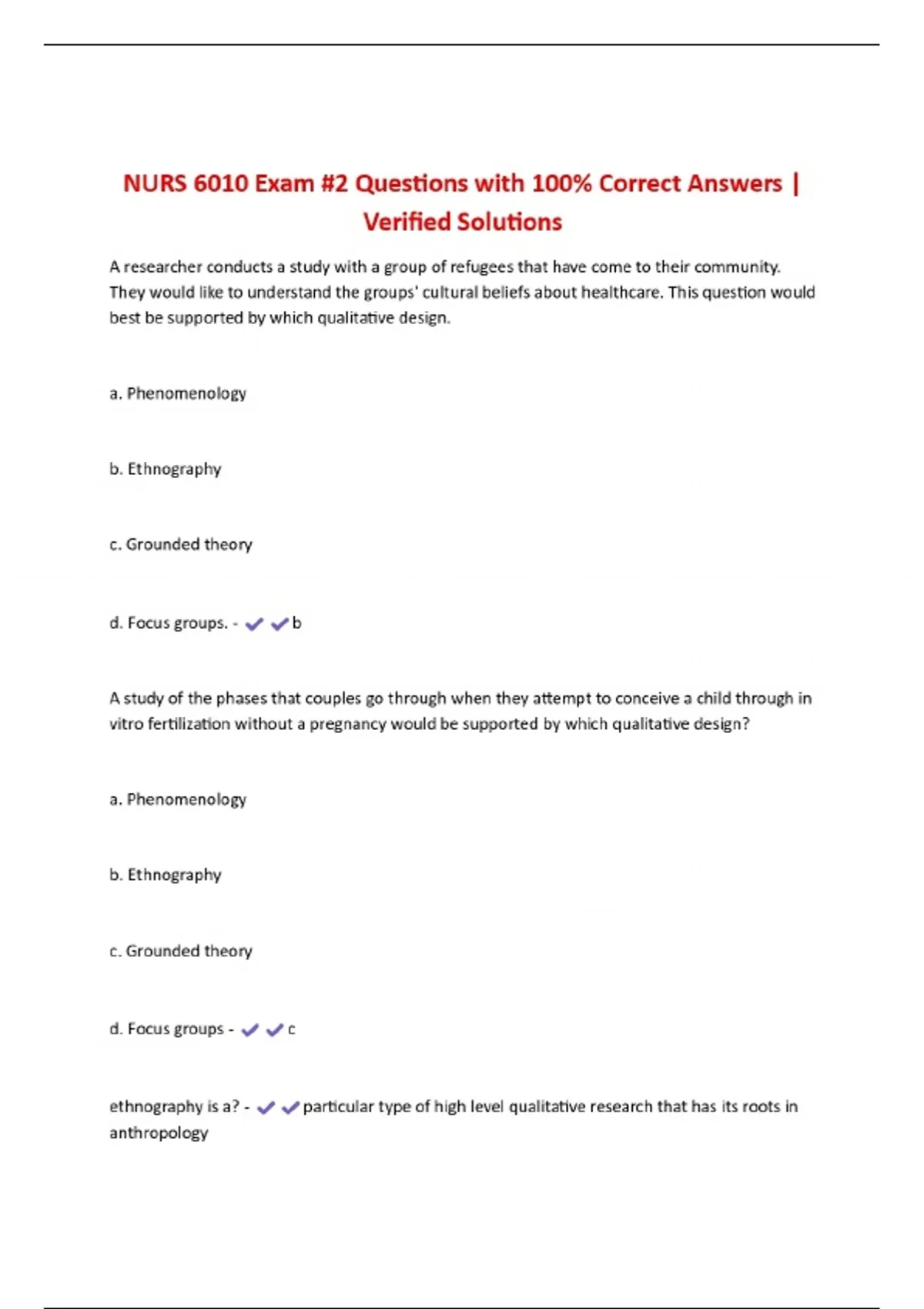 NURS 6010 Exam #2 Questions with 100% Correct Answers | Verified Solutions