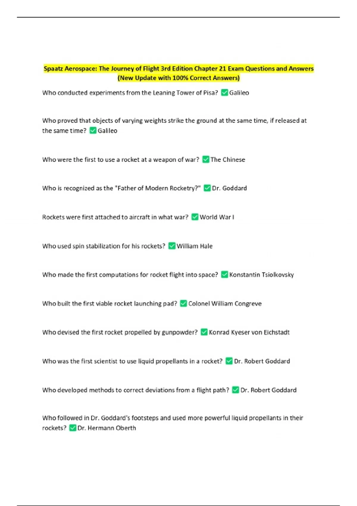 Spaatz Aerospace: The Journey of Flight 3rd Edition Chapter 21 Exam Questions and Answers (New Update with 100% Correct Answers)