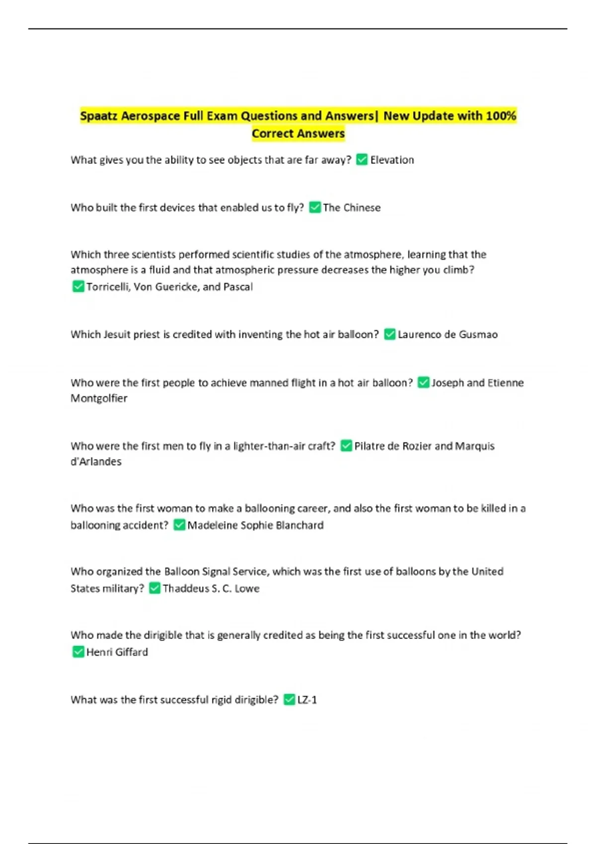 Spaatz Aerospace Full Exam Questions and Answers| New Update with 100% Correct Answers