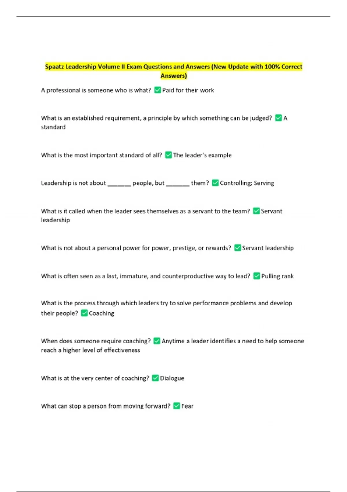 Spaatz Leadership Volume II Exam Questions and Answers (New Update with 100% Correct Answers)
