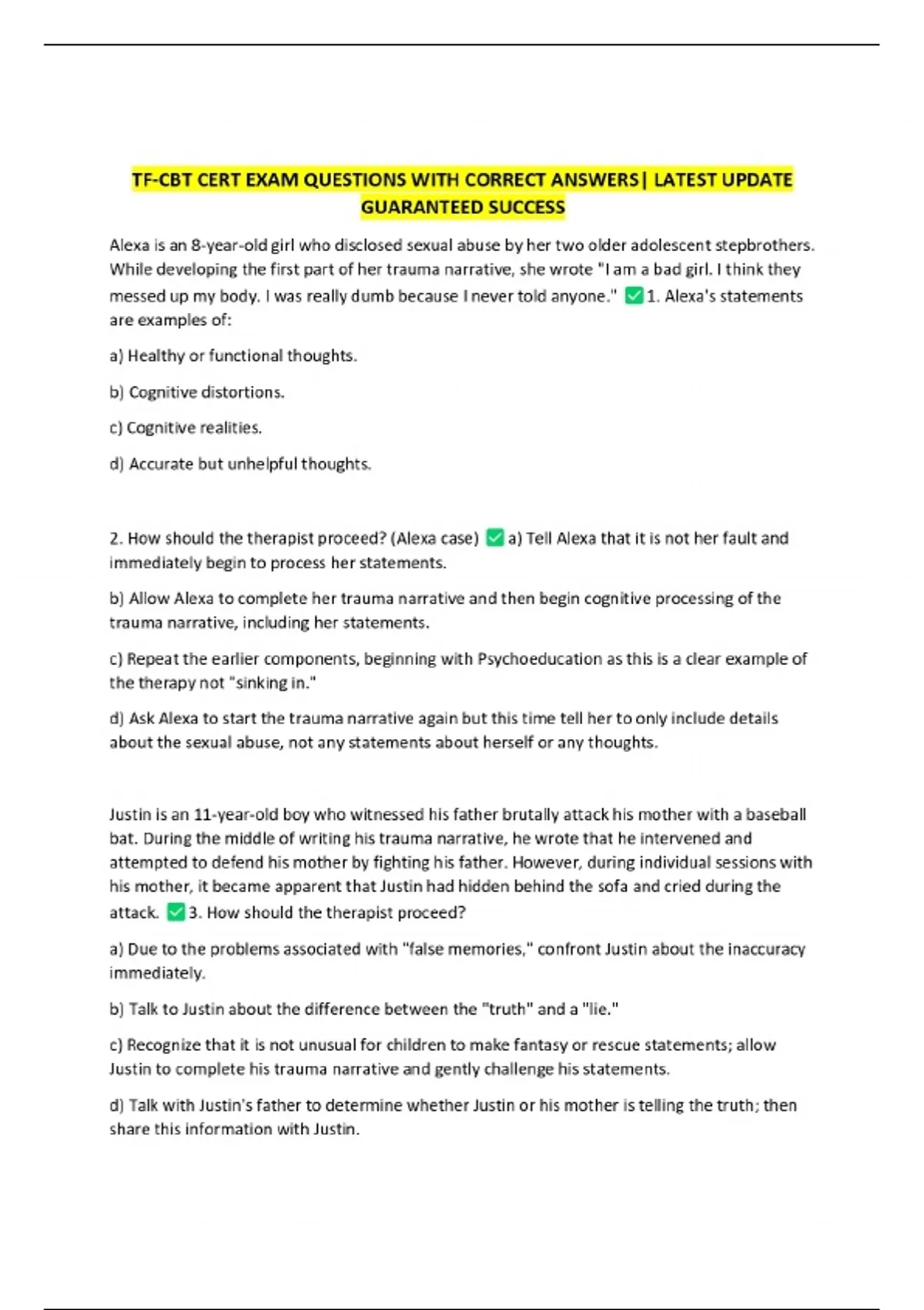 TF-CBT CERT EXAM QUESTIONS WITH CORRECT ANSWERS| LATEST UPDATE GUARANTEED SUCCESS