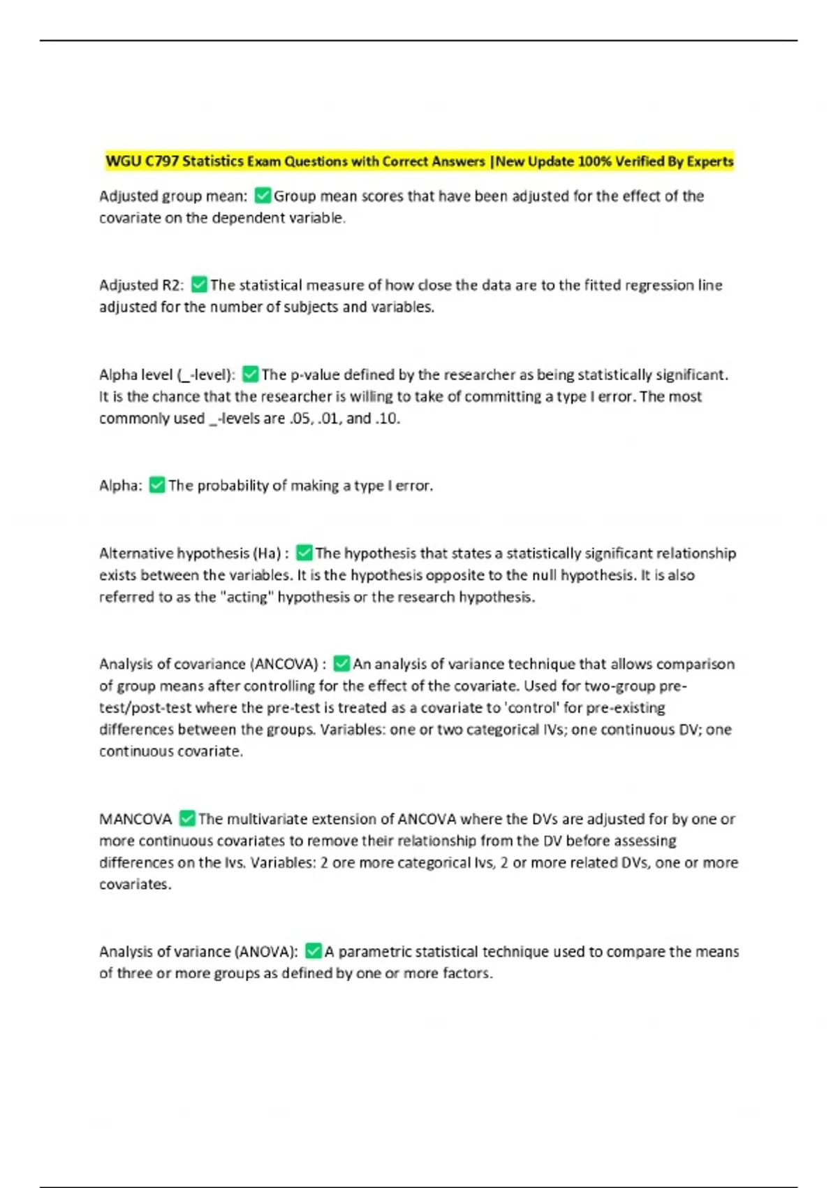 WGU C797 Statistics Exam Questions with Correct Answers |New Update 100% Verified By Experts