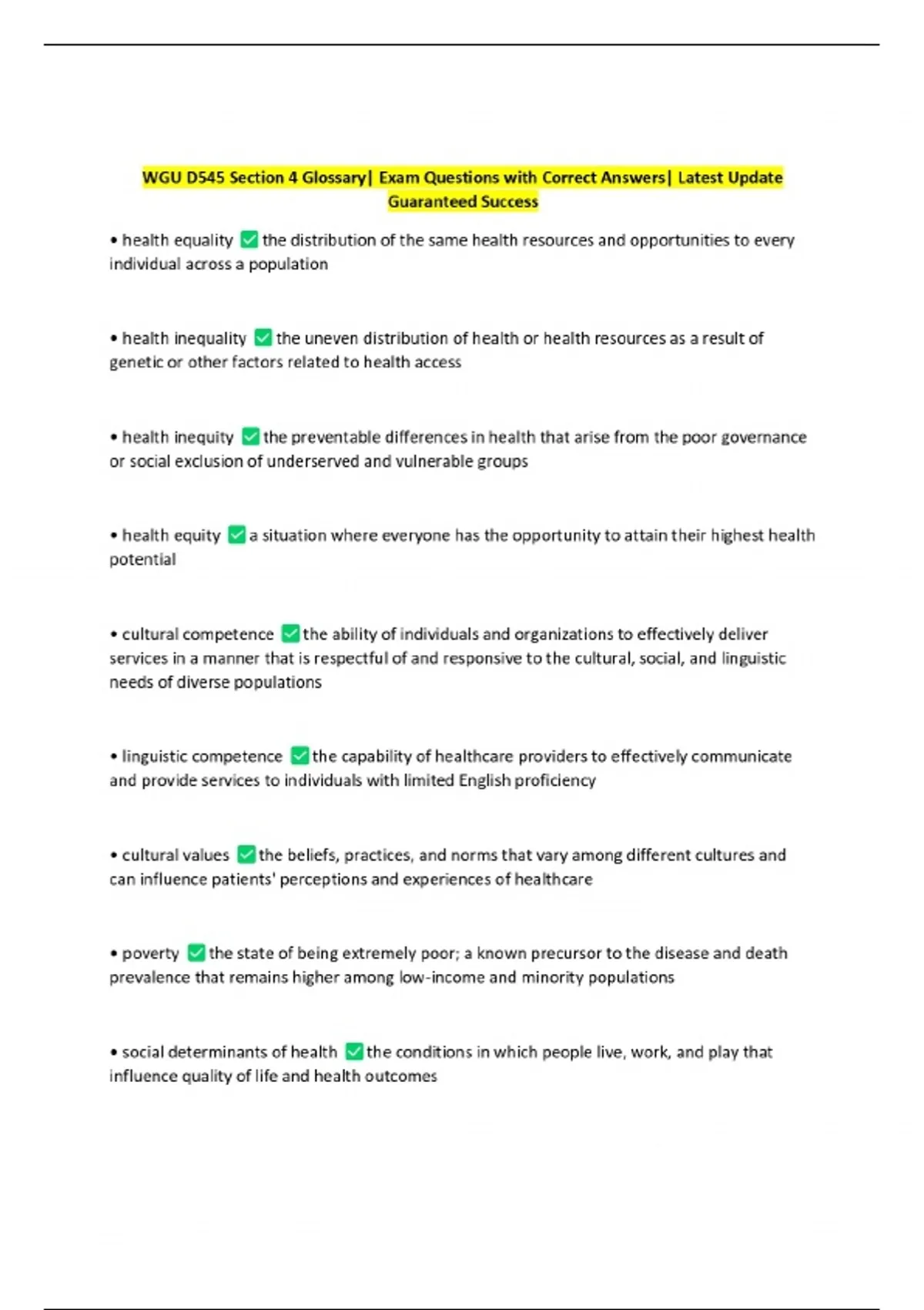 WGU D545 Section 4 Glossary| Exam Questions with Correct Answers| Latest Update Guaranteed Success