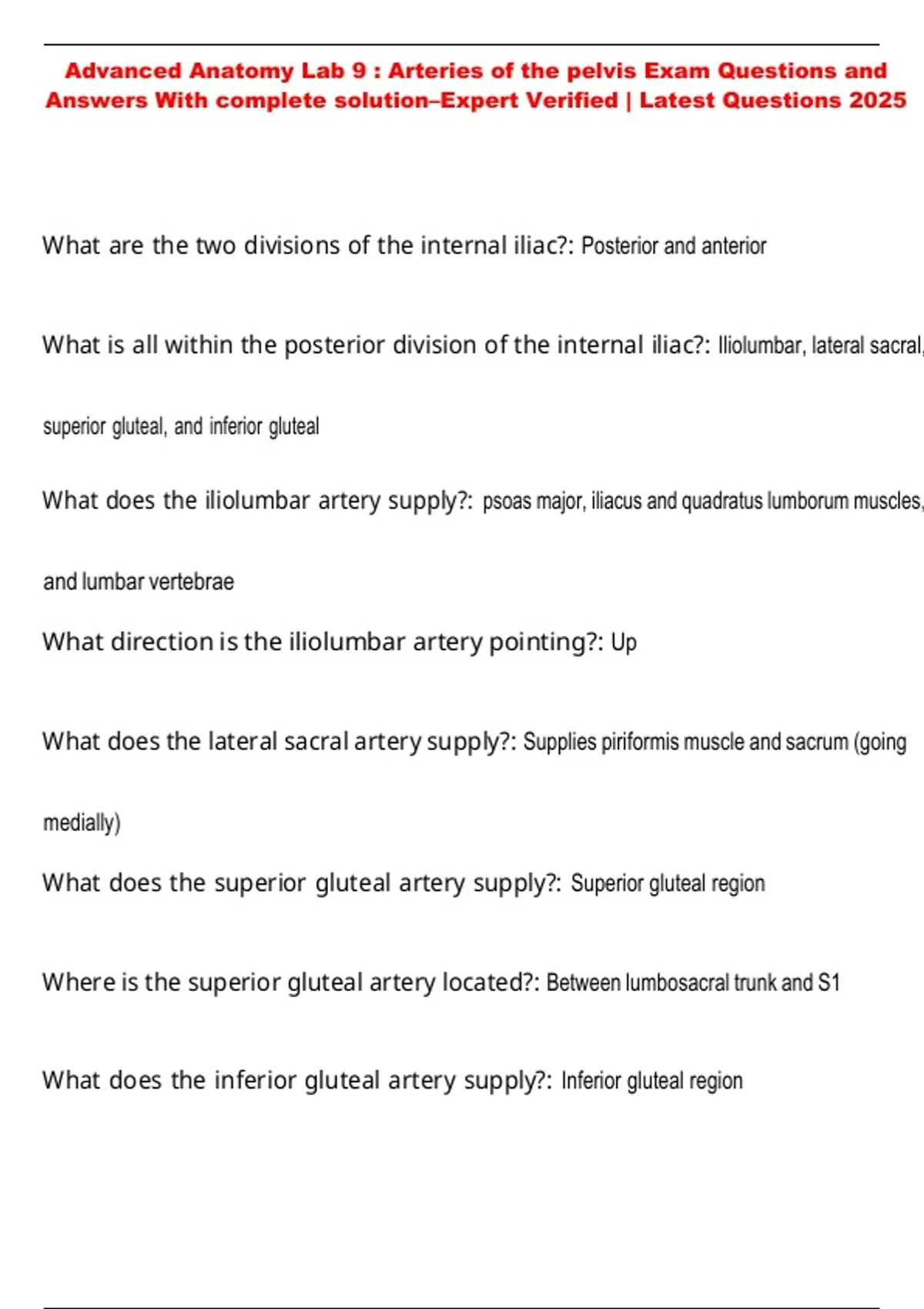 What does the lateral sacral artery supply?: Supplies piriformis muscle and sacrum (going