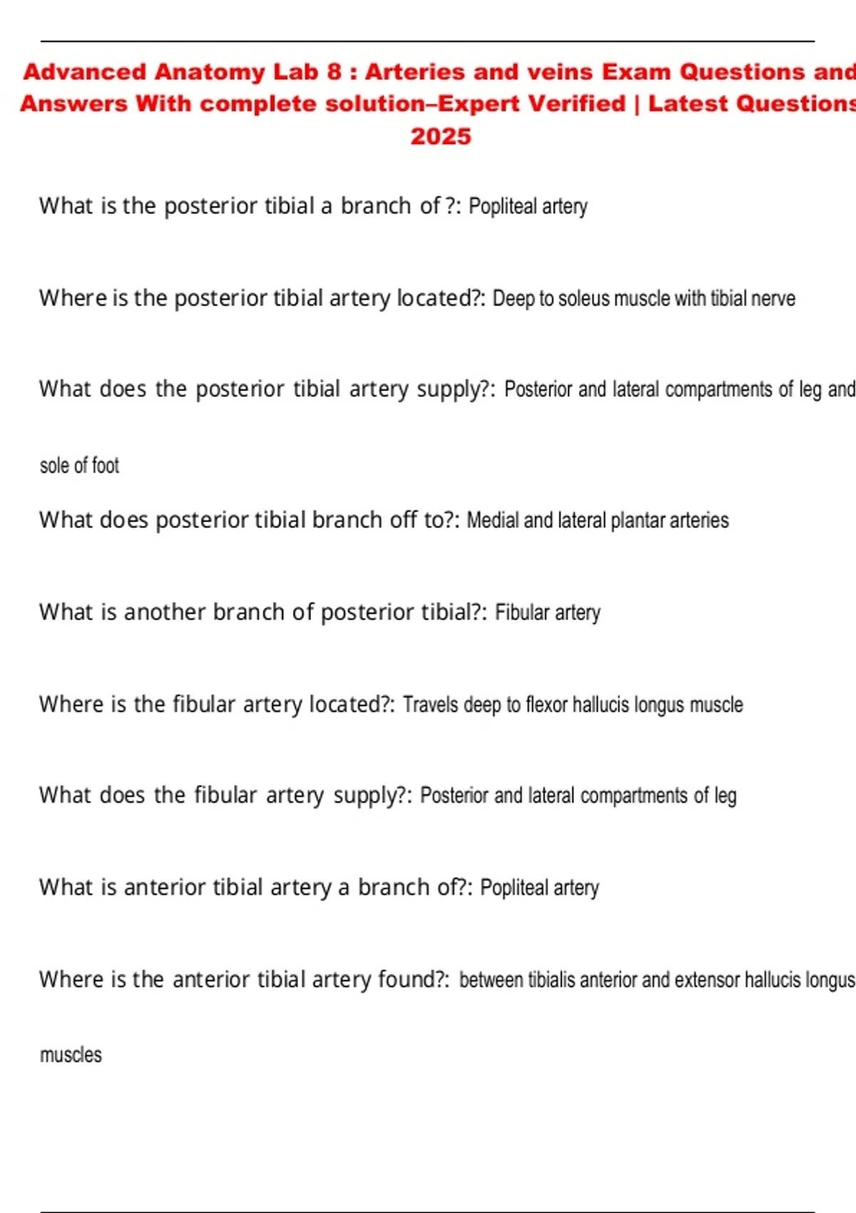 Where is the posterior tibial artery located?: Deep to soleus muscle with tibial nerve