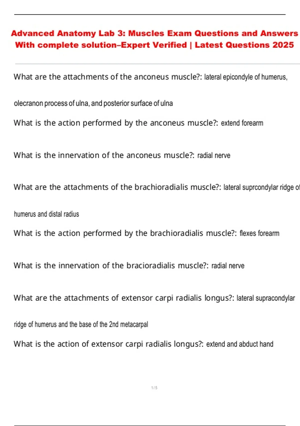 What is the action performed by the anconeus muscle?: extend forearm