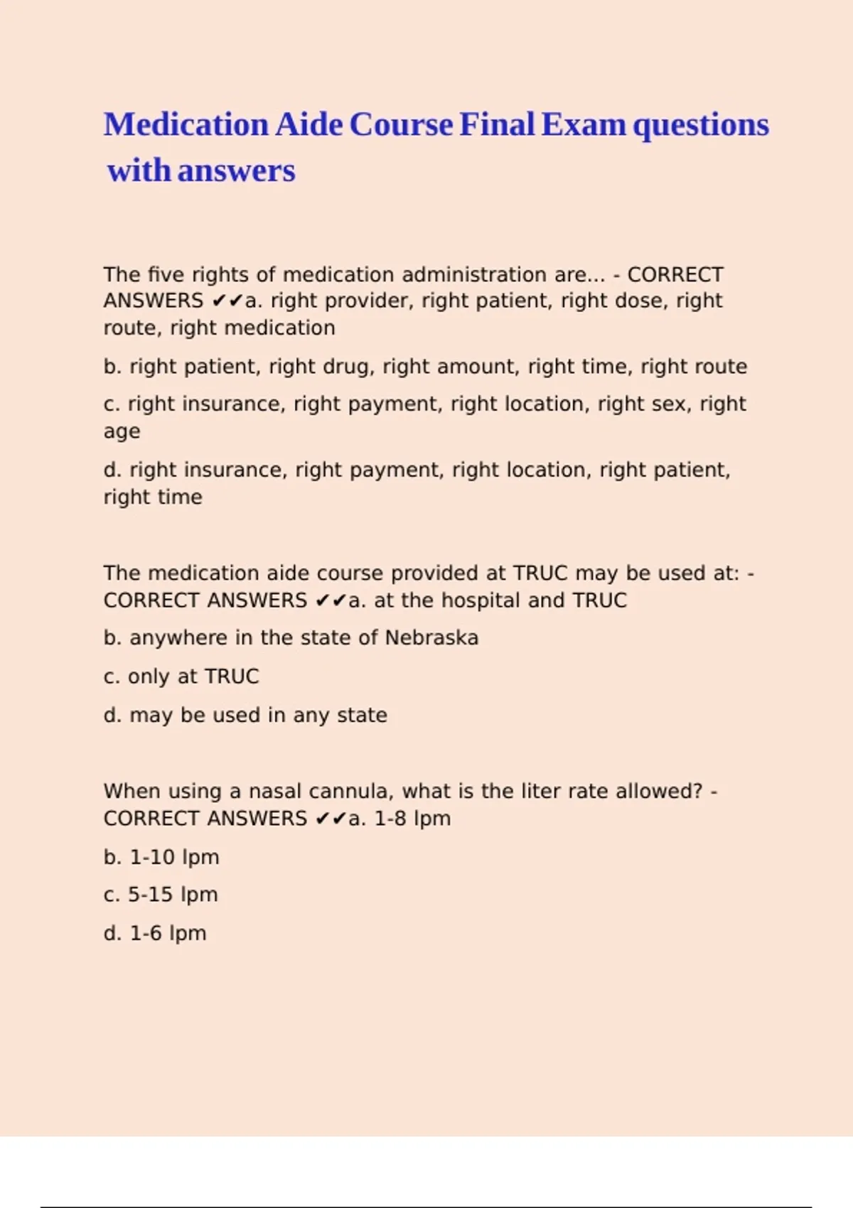 CORRECT ANSWERS ✔✔a. 1-8 lpm |\ |\ |\ |\