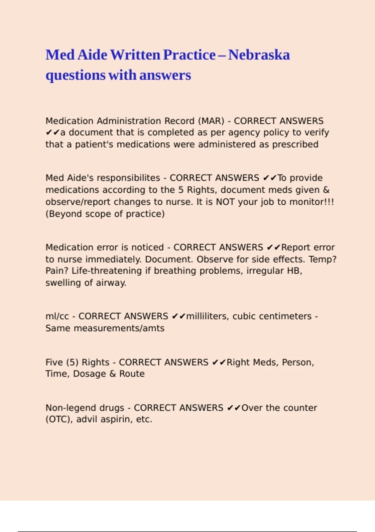 Med Aide's responsibilites - CORRECT ANSWERS ✔✔To provide