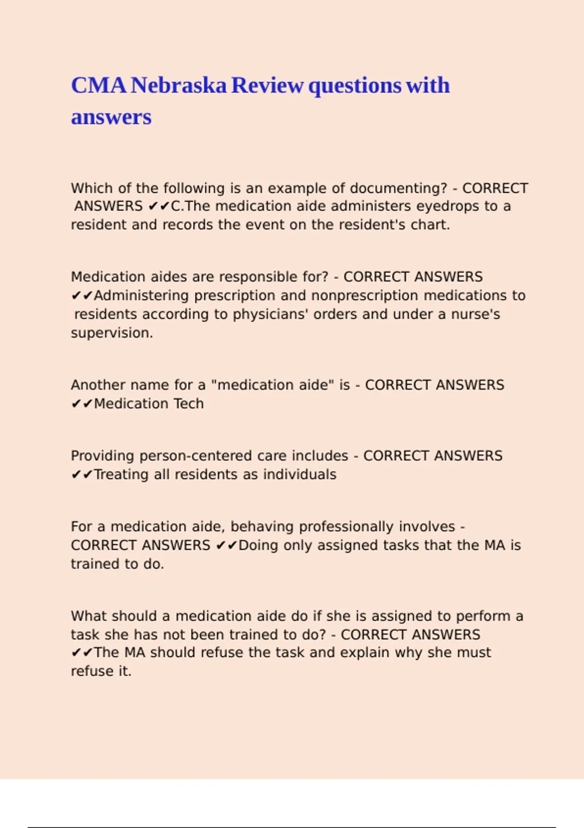 ANSWERS ✔✔C.The medication aide administers eyedrops to a