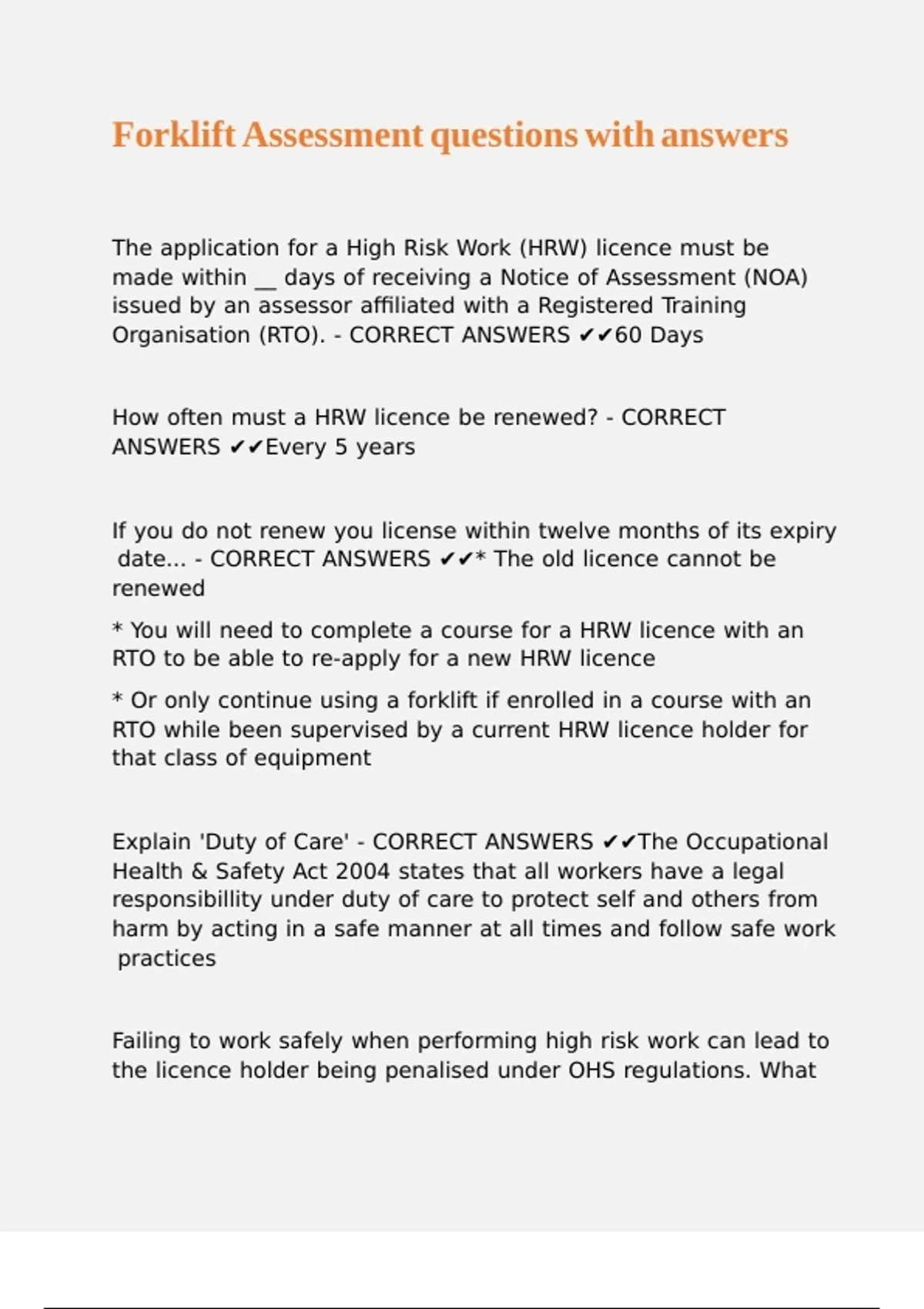 Forklift Assessment questions with answers |\ |\ |\ |\