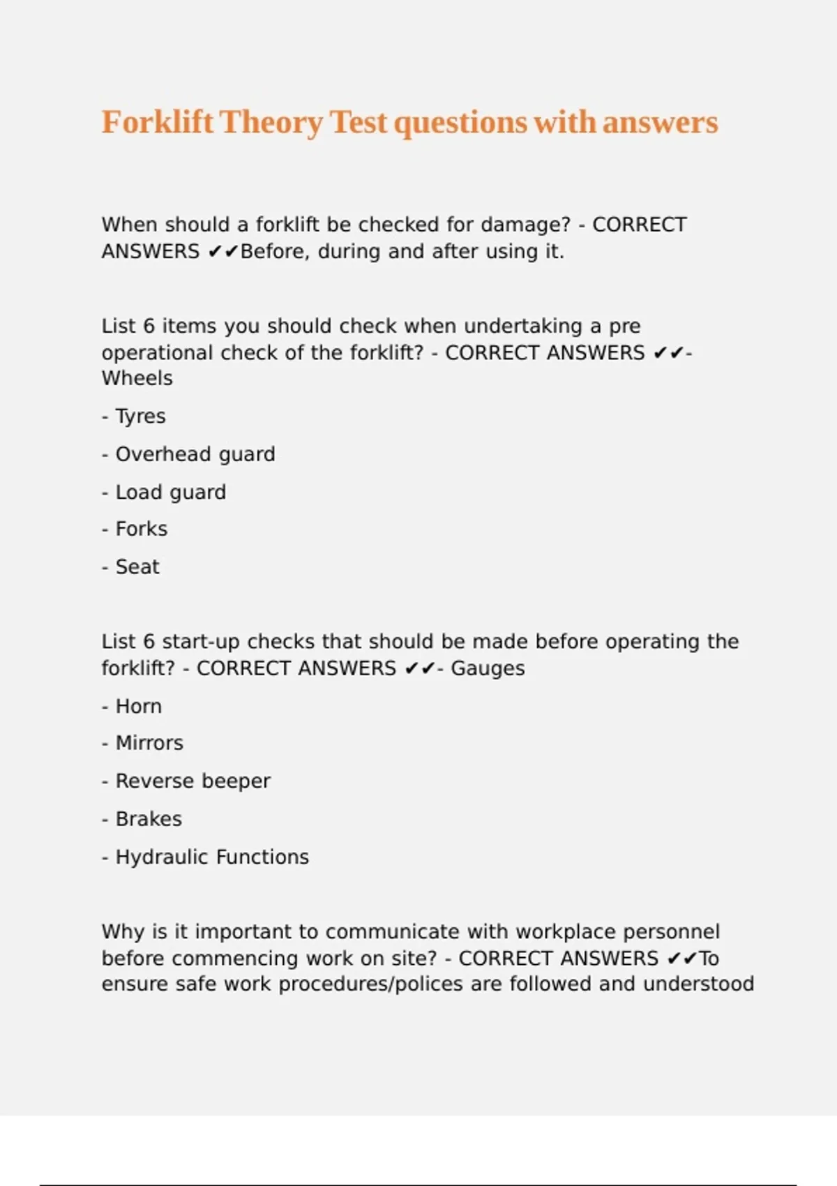 operational check of the forklift? - CORRECT ANSWERS ✔✔-