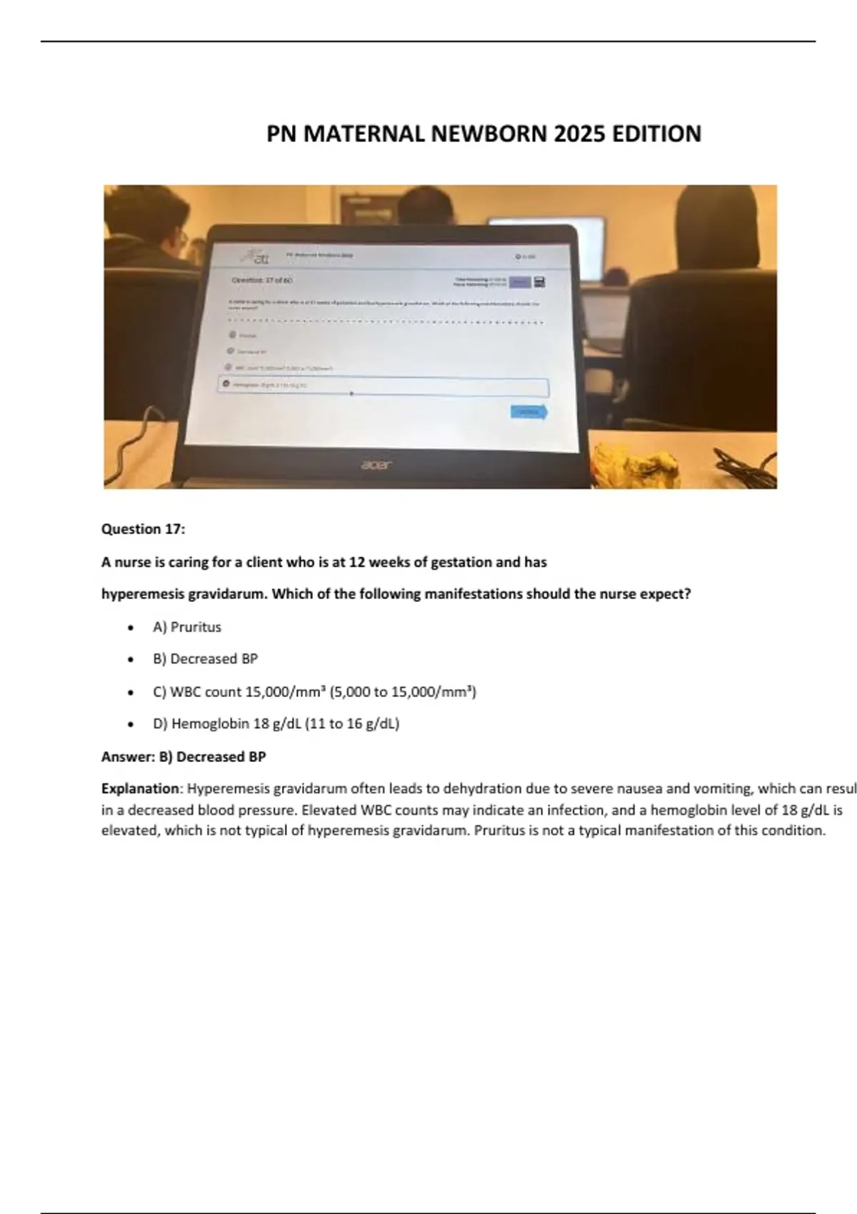 Explanation: Hyperemesis gravidarum often leads to dehydration due to severe nausea and vomiting, which can resul